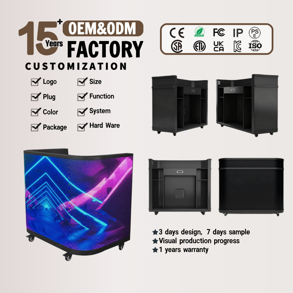 This Curved Customizable GOB LED Reception Desk with Adjustable Height for Business is a versatile visual solution crafted for modern indoor commercial scenarios, redefining the functionality and aesthetics of commercial LED display equipment. As a premium curved front desk LED screen and dedicated indoor commercial LED display, it integrates GOB protective technology, fully customizable display design and flexible height adjustment, perfectly combining visual display performance with humanized practical design. This GOB LED display screen is also a functional indoor LED video wall desk, tailored for diverse business reception needs, and becomes a core visual asset for upgrading brand image and optimizing commercial reception space.